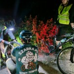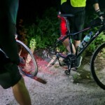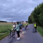 Jak to podczas prawdziwych wypraw bywa, nie obyło się bez małej przygody. W drodze powrotnej jeden z uczestników padł ofiarą zasadzki – prawdopodobnie jakiś kamienny snajper albo agresywny kolec akacji postanowił sprawdzić wytrzymałość jego dętki. Na szczęście mieliśmy wszystko, co potrzebne – w świetle naszych lampek rowerowych przeprowadziliśmy błyskawiczną wymianę dętki. To pokazuje, jak ważne jest odpowiednie przygotowanie do nocnych wypadów!
