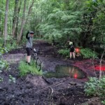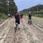 Na trasie mogliśmy podziwiać: dzikie zwierzęta (3 sarny, myszołowa, oraz krwiopijne doskwiery czyli leśne komary 😉 ), rzekę Czarna Woda, ciekawą zabudowę w osadzie Szklana Huta oraz polne krajobrazy w Jastrzębsku Starym. Pod koniec trasy (w Sękowie) przejeżdżaliśmy przez bagno, które dosłownie wciągało.